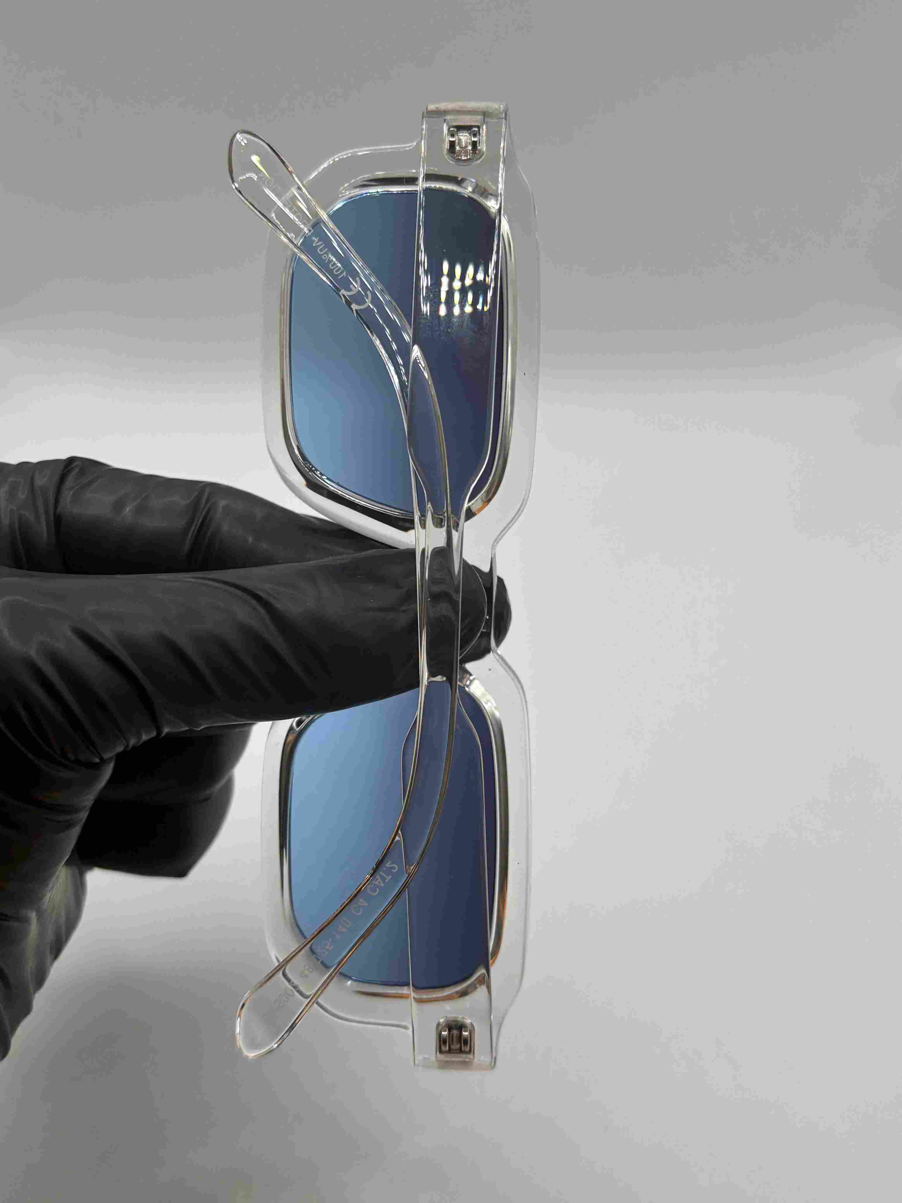 Pose-les à plat sur un fond blanc ou en story contre une lumière naturelle : les reflets sur la monture transparente font tout le travail. Un effet “haut de gamme” garanti à l’écran.