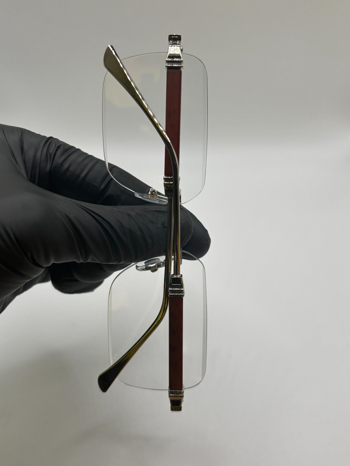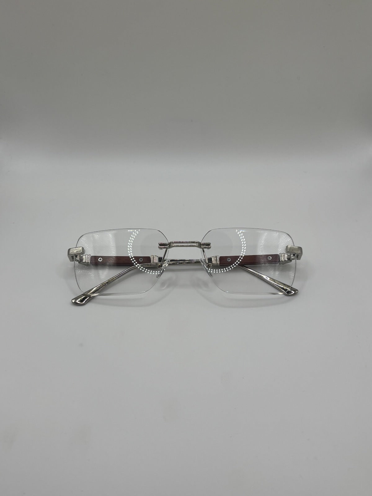 Le modèle IMPERIAL incarne la définition du prestige minimaliste. Une monture sans cadre, avec des branches boisées élégantes et une ligne argentée fine pour structurer l’ensemble. Les verres totalement transparents donnent un rendu intelligent, raffiné et affirmé, parfait pour les looks habillés comme pour les ambiances business ou clean street.