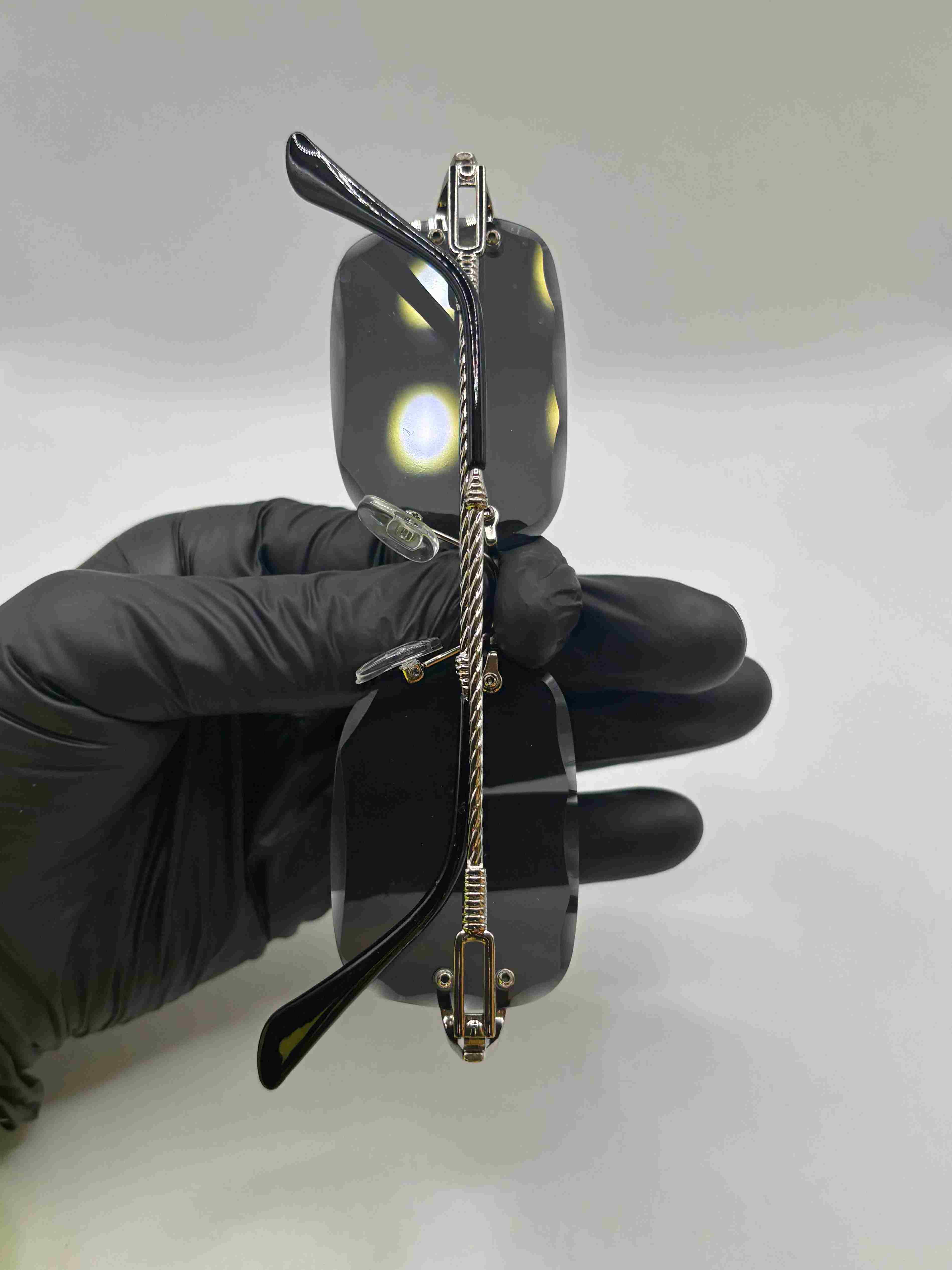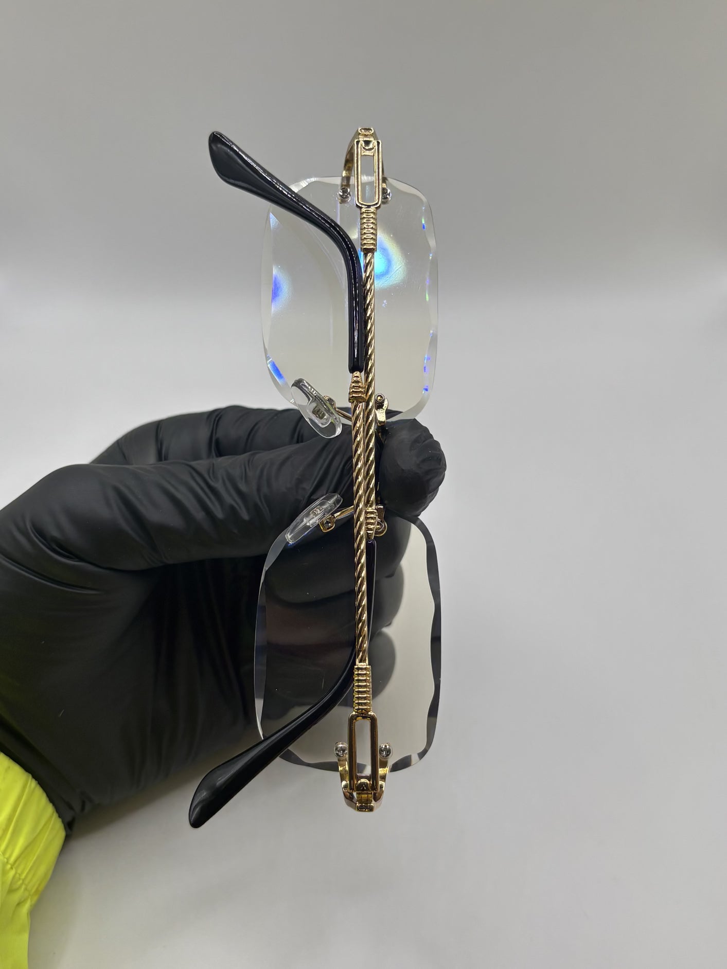 Le modèle Carter, c’est la fusion du minimalisme et du détail précieux. Sans monture visible, ses verres découpés aux angles polis brillent comme des pierres taillées. Les branches torsadées, façon bijou, ajoutent une touche de luxe discrète. Élégance, finesse, précision — le Carter, c’est pour les connaisseurs.
